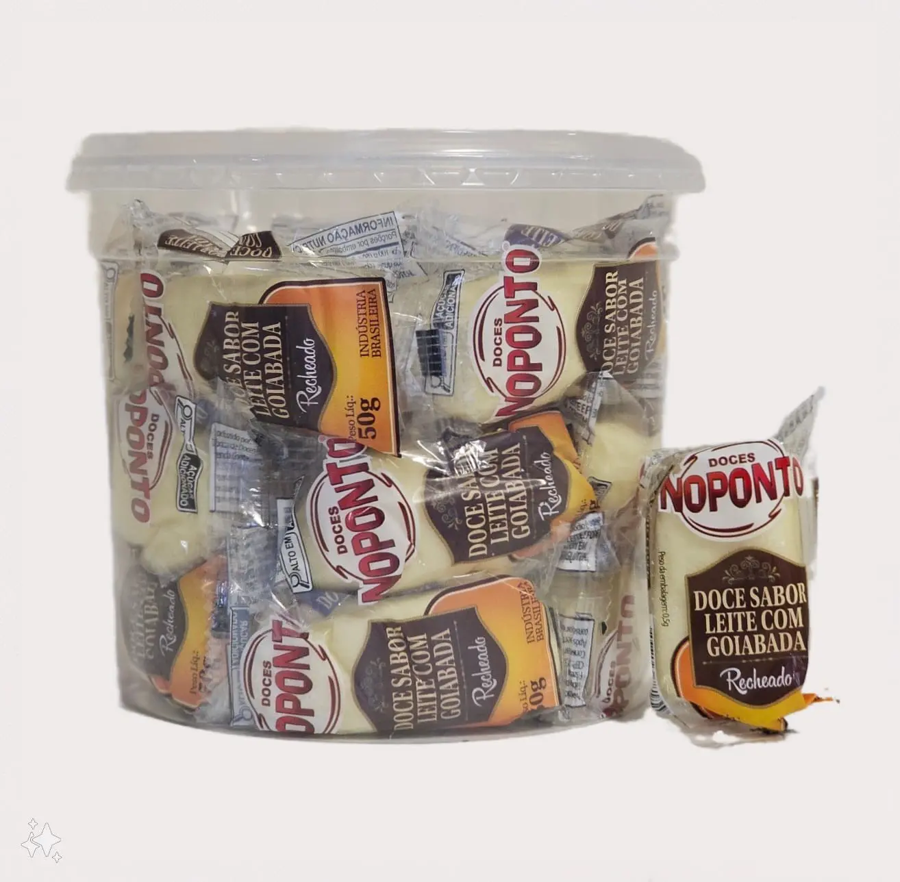 Doce de Leite recheado com Goiabada – No Ponto – 50 gramas – Pote com 20 unidades
