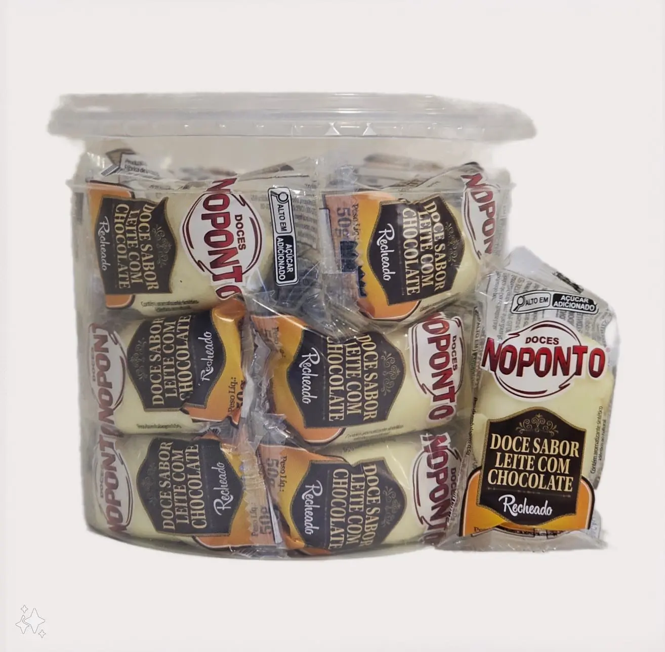 Doce de Leite recheado com Chocolate – No Ponto – 50 gramas – Pote com 20 unidades